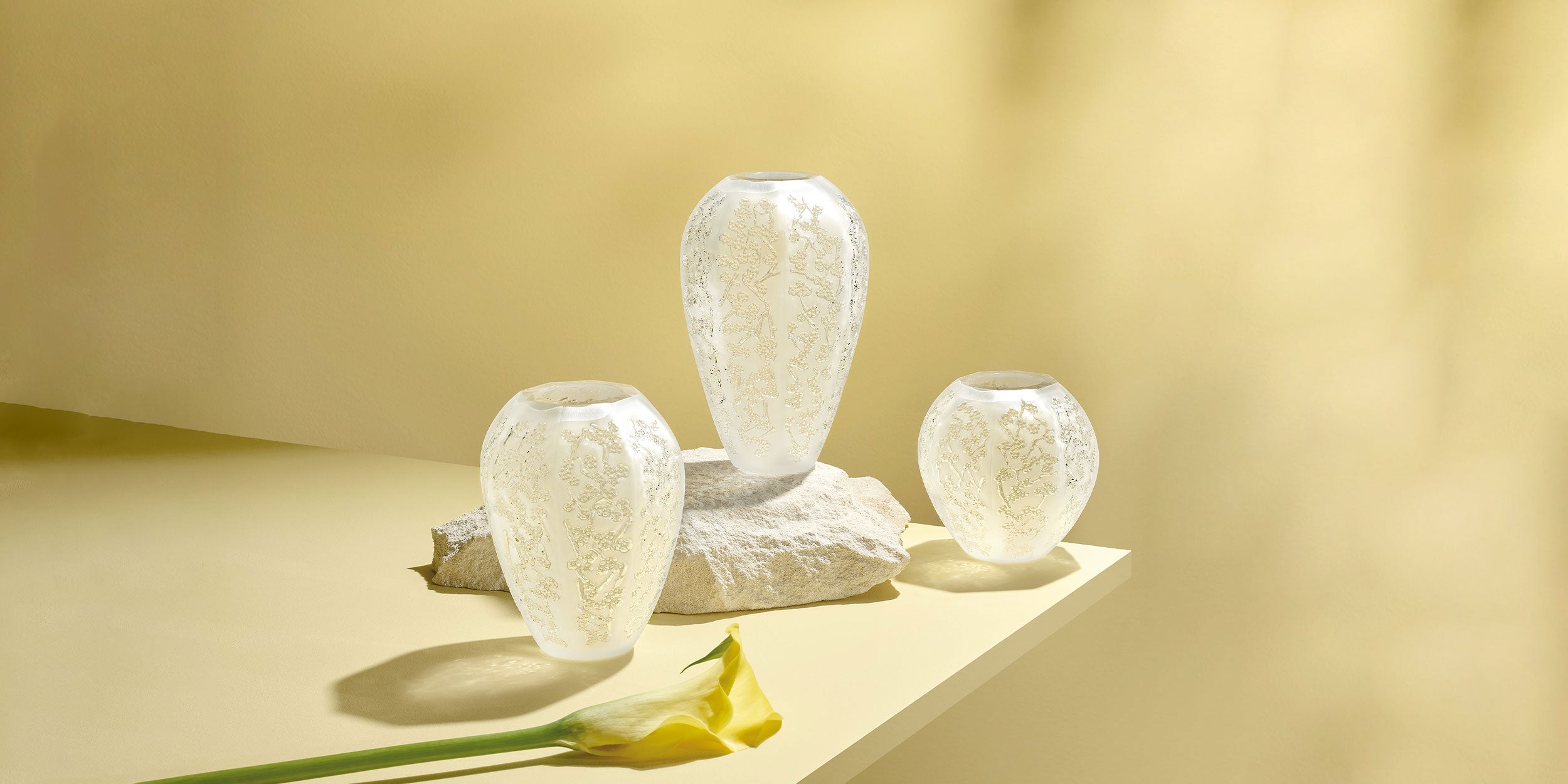 Grâce au talent de ses artistes et au savoir-faire exceptionnel de ses maîtres-verriers, Lalique saisit le pouvoir décoratif et symbolique de la pivoine, du muguet, de l’orchidée ou des cerisiers en fleurs.