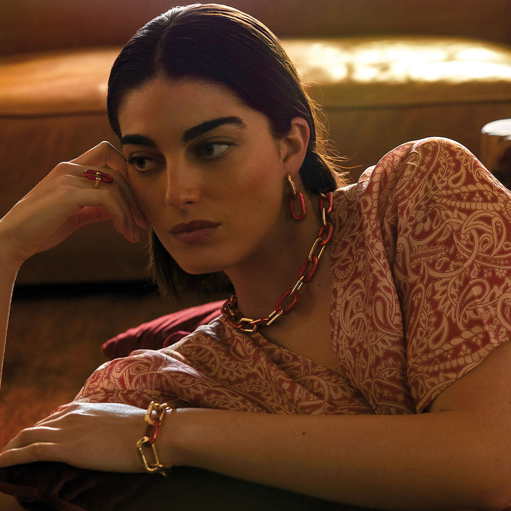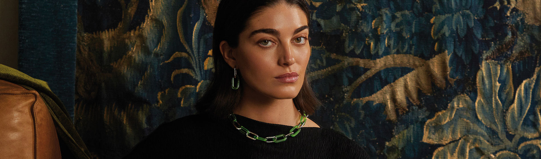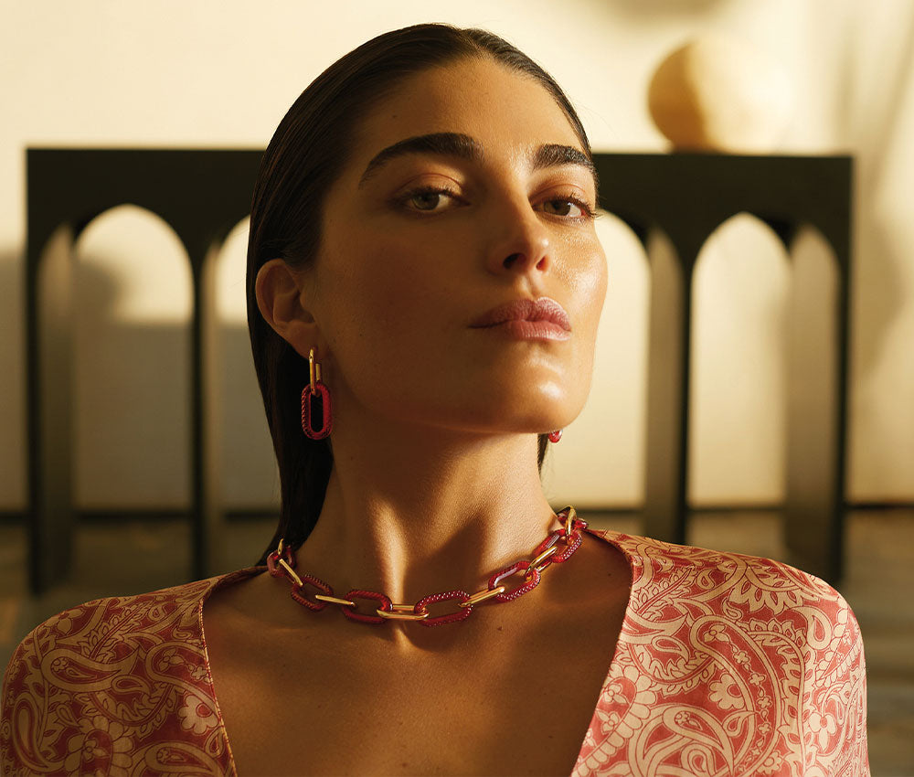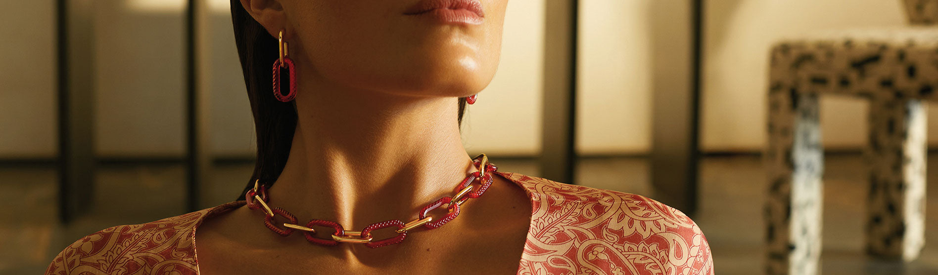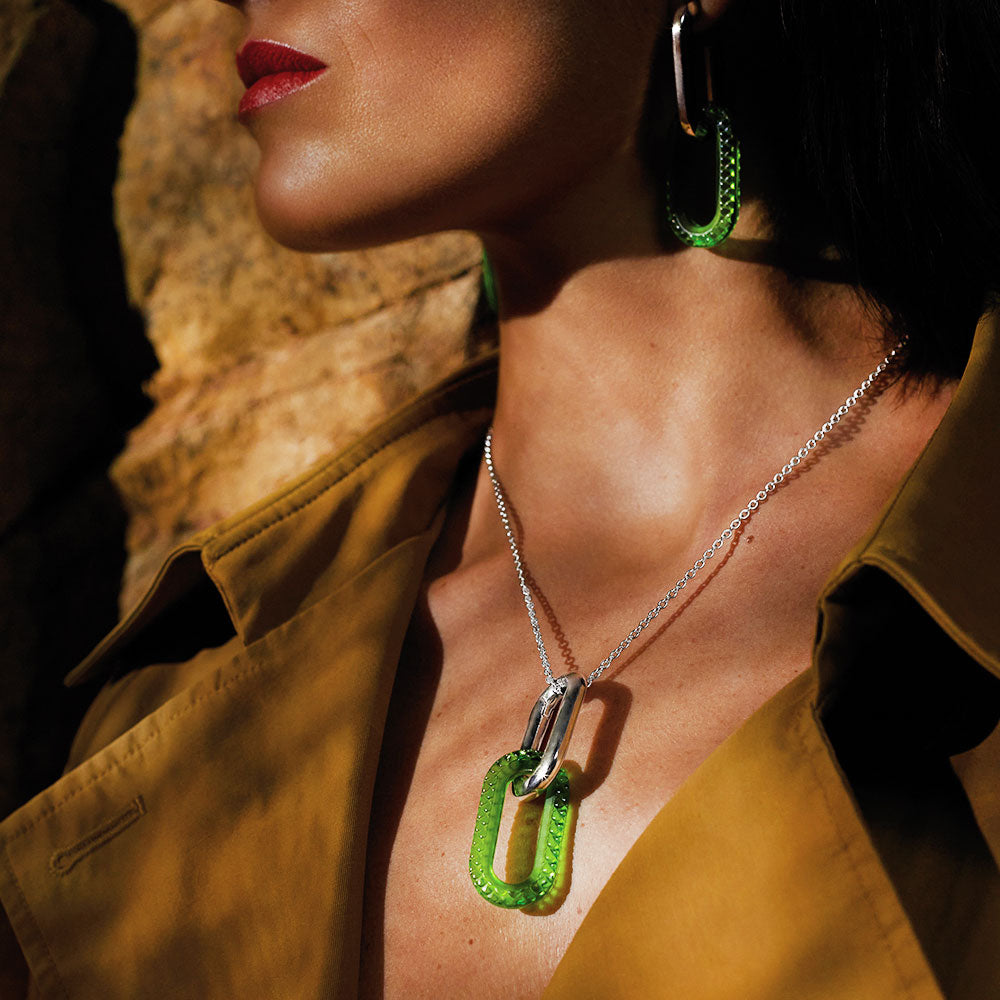 Des rayures du zèbre aux écailles du serpent, imitant parfaitement la peau animale, la collection de bijoux "Empreinte Animale" propose 5 cristaux interchangeables - du noir et blanc au rouge intense, en passant par le vert et le violet crépusculaire - à mixer avec des maillons plaqués argent ou or jaune 18 carats pour créer de magnifiques parures colorées.