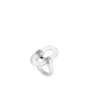 Tel un imprimé, les lignes zébrées parcourent le cristal et sont stoppées net par des tranches lisses, un jeu de textures sensible au toucher. Les maillons de métal et de cristal s’enchaînent et s’alternent pour composer des parures fortes et élégantes à la fois.