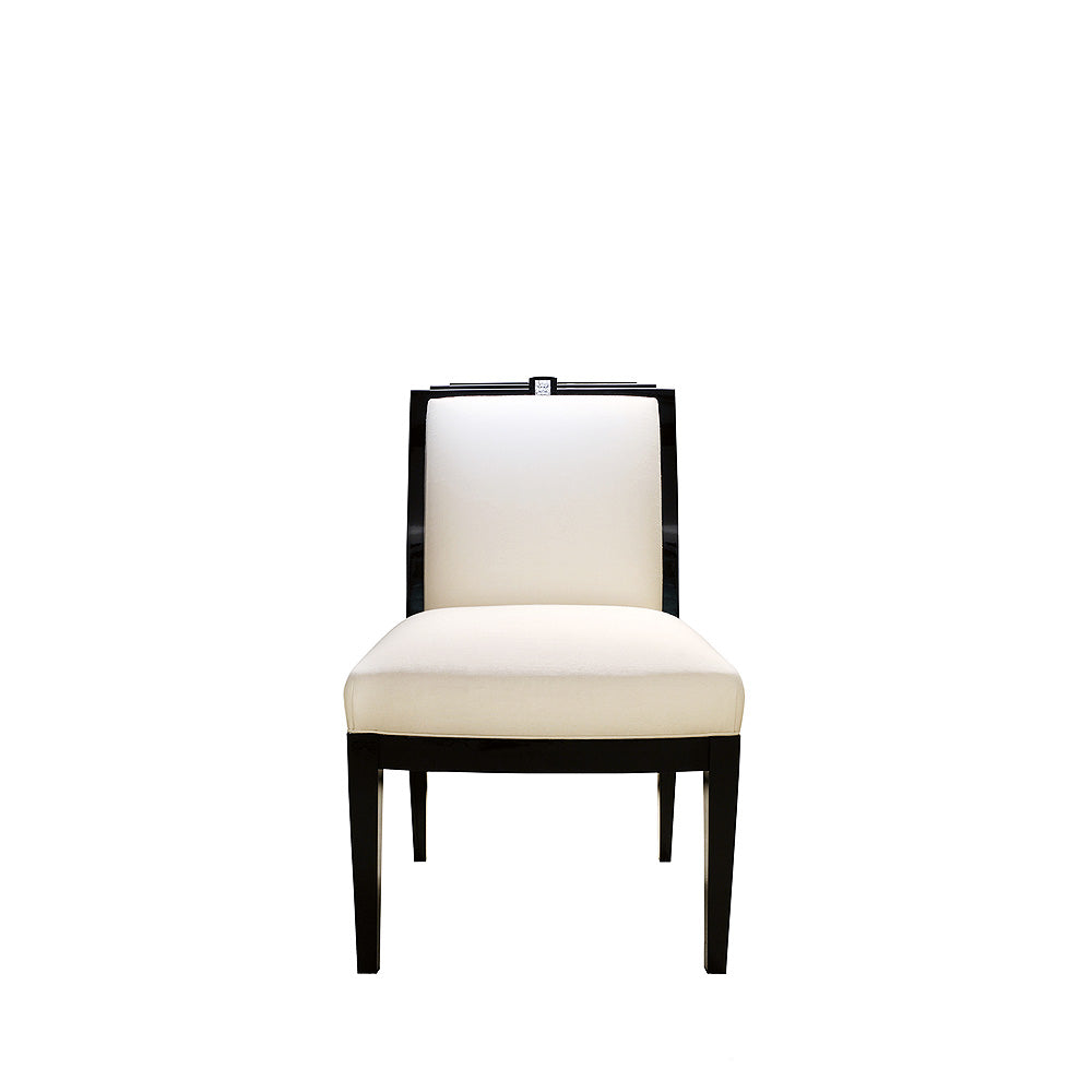 Cristal incolore, laqué noir et soie ivoire, chaise sans accoudoirs