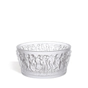 En 1927, l’imagination et le génie créatif de René Lalique ont donné naissance au vase Bacchantes. Véritable ode à la féminité, cette ronde de nus sculpturaux en bas relief est emblématique du style Lalique. D'une splendeur insolente et d’une sensualité troublante, les jeunes prêtresses de Bacchus offrent leur beauté et leurs courbes voluptueuses. Le cristal satiné rappelle la finesse du grain de peau tandis que les jeux de lumière insufflent vie et mouvement à la pièce.