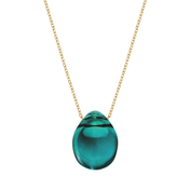 Ce pendentif est un ornement poétique; la rondeur fluide de sa forme, la transparence vibrante du cristal et la subtile nuance de couleur oscillent au rythme des mouvements du corps.
