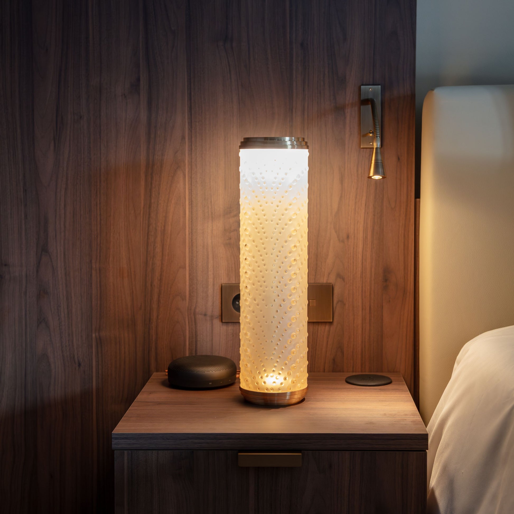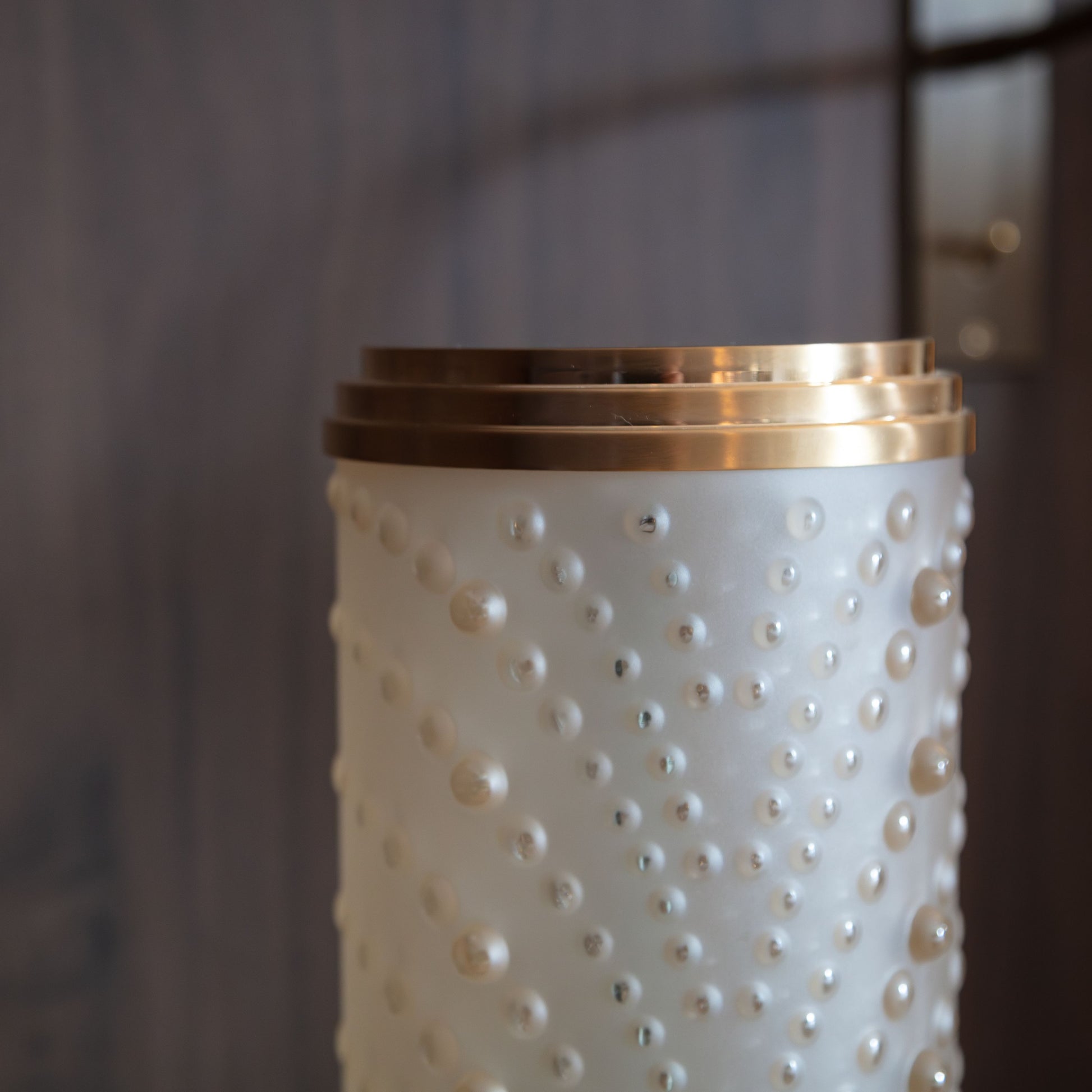 La suspension Coutard associe le motif perlé Coutard au Masque de Femme, comme sur la fontaine éponyme créée par René Lalique en 1937. Le jaillissement de fines perles d’eau évoque légèreté et fraîcheur. Ce motif devenu emblématique entourait le Masque de Femme sur la fontaine créée en commande spéciale pour M. Coutard.