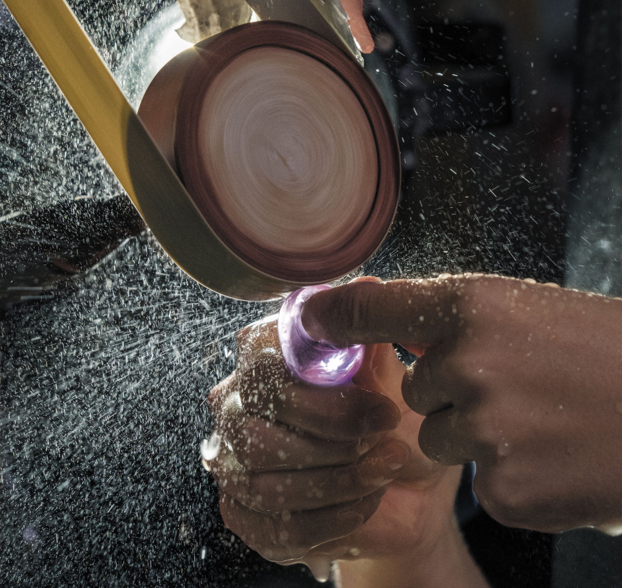 The cold glass workshop resonates with a symphony of diamond-tipped saws working the crystal with water. The crystal’s metamorphosis continues here. The importance given to cold glass is characteristic of Lalique. It is the result of the extreme attention to detail in the sculpture and finishing of each creation.