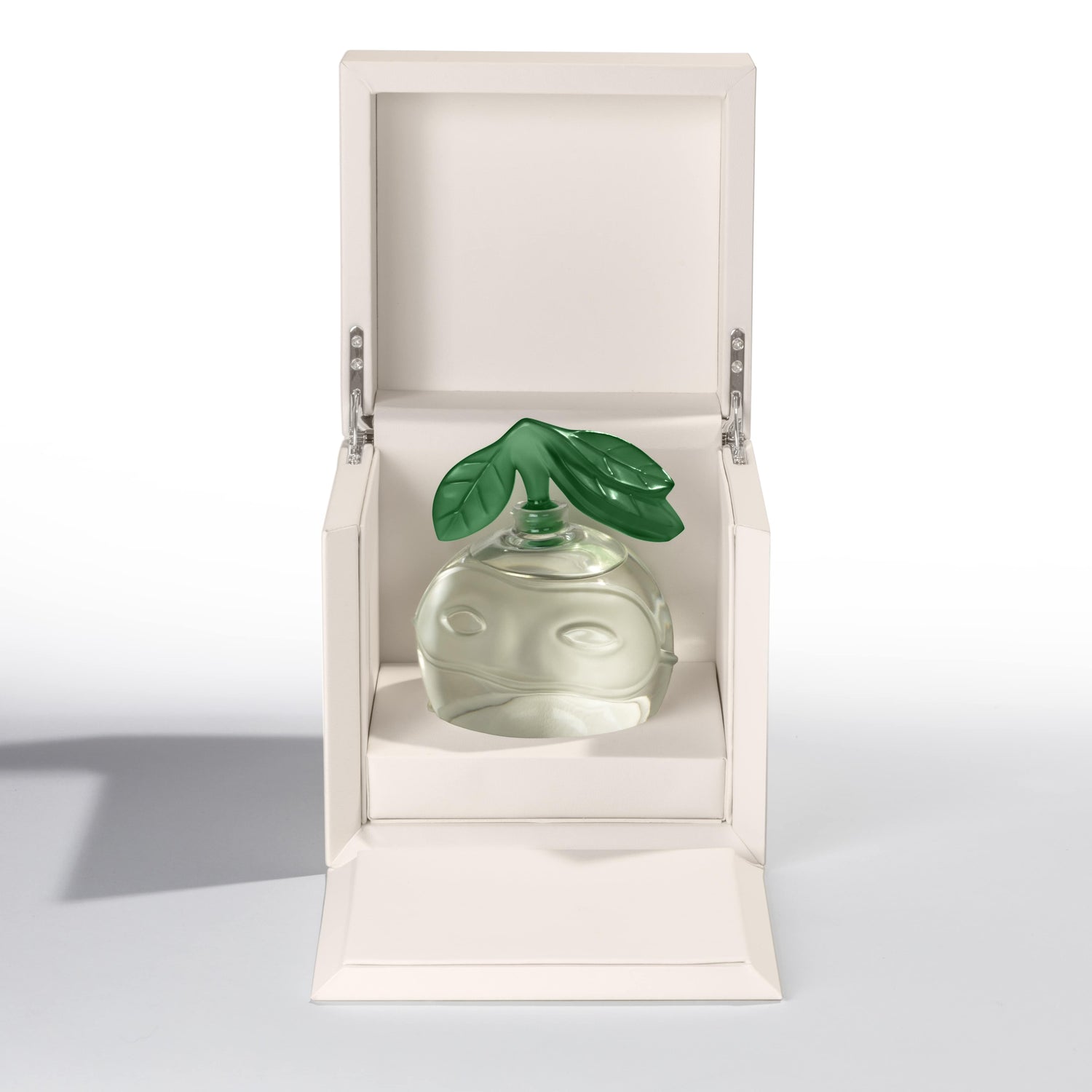 This uniquely poetic flacon celebrates two extraordinary artistic visions. Where René Magritte’s universe challenges our perception of reality, the crystal shaped by Lalique gives it new form, tangible and luminous.