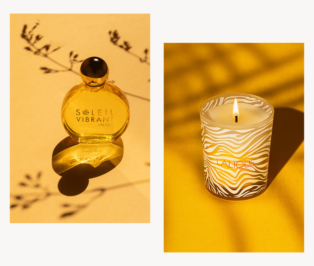 Soleil Vibrant Lalique is with you anywhere, anytime with the new nomadic formats: the hair mist and roll-on.