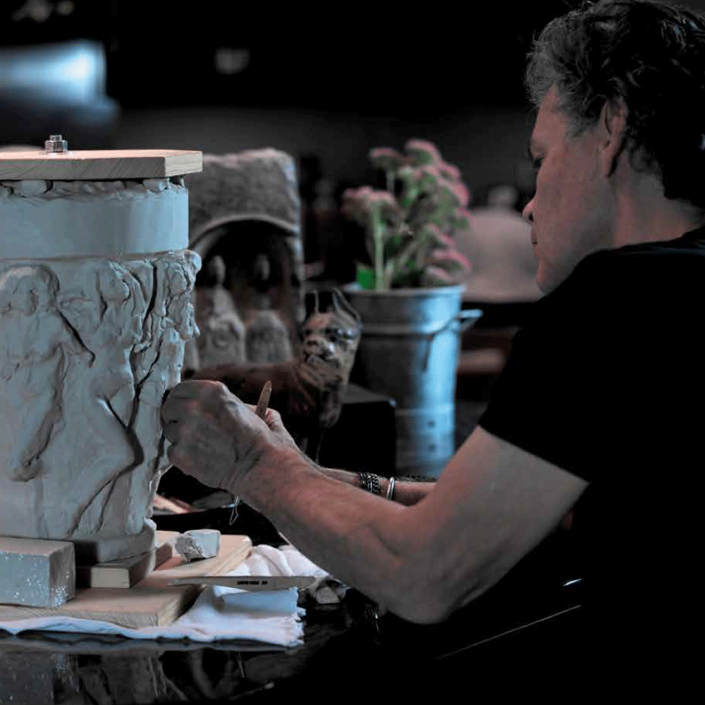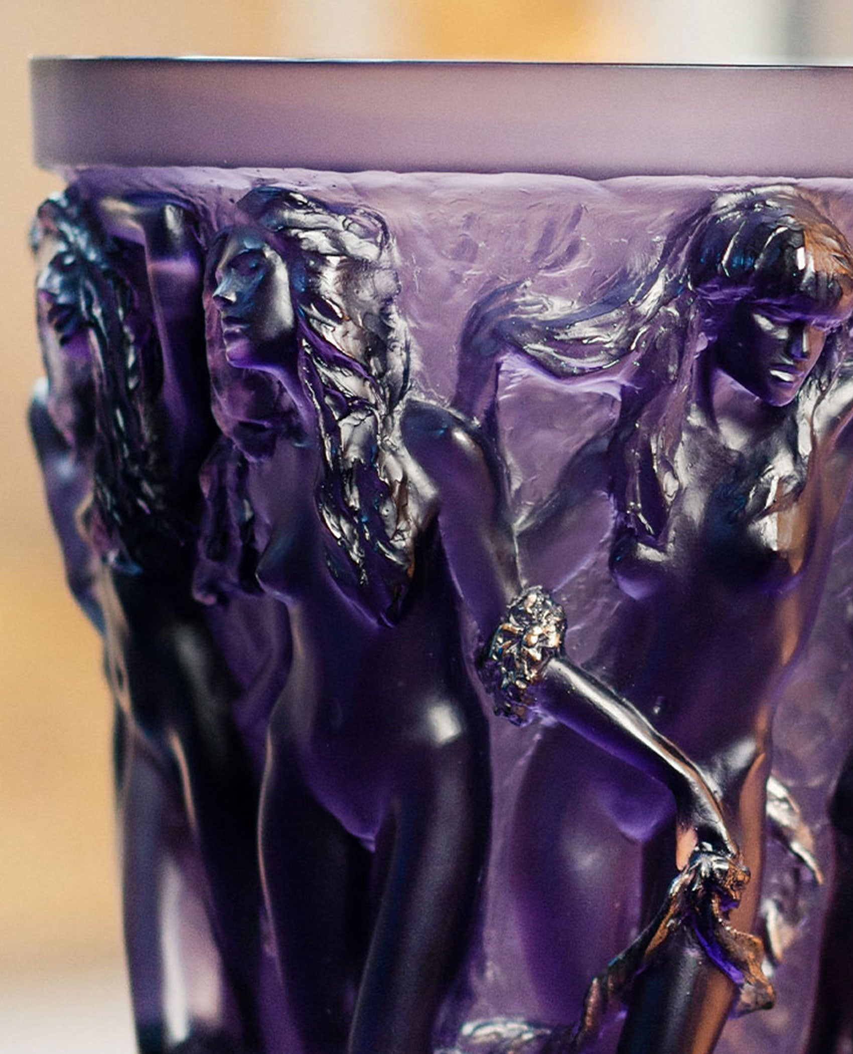 Terry Rodgers and Lalique present the Sirènes vase. The nine silhouettes sculpted in bas-relief on Rodgers’ hyperrealist Sirènes are a reinterpretation of the dance of the Bacchantes that Rene Lalique, founder of Maison Lalique portrayed on his legendary vase. You have to get close up to Terry Rodgers’ canvases to get behind the mask of erotic illusions: in the context of the Western world, which would have us believe in the miracle of youth, in the triumph of beauty and money, the artist strips reality bare and concentrates our gaze on a seemingly intimate gathering where no one appears to relate.