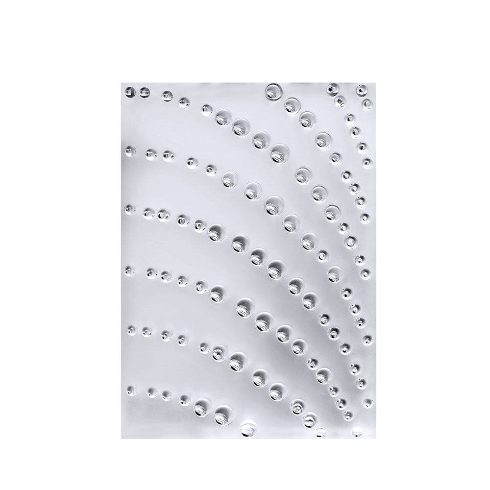 These panels, specially designed by René Lalique in 1935 at the request of a client, represent a spray of droplets gushing from the transparent satin crystal.