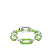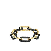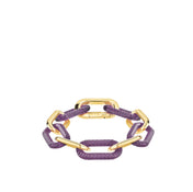 With its delicately wild note, the «Empreinte Animale» jewellery collection offers 5 interchangeable crystals – from the black & white, to the intense red, green and dusk purple - to mix and match with silver or 18-carat yellow gold-plated links to create magnificent, colourful sets. This bracelet alternates crystal and metal links. Available in a single size, it is possible to buy an additional carabinet to lengthen the jewel.