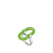 With its delicately wild note, the «Empreinte Animale» jewellery collection offers 5 interchangeable crystals – from the black & white, to the intense red, green and dusk purple - to mix and match with silver or 18-carat yellow gold-plated links to create magnificent, colourful sets. The ring features its crystal in all its lightness.