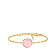 Pink pearly on clear crystal, 18 carats yellow gold plated