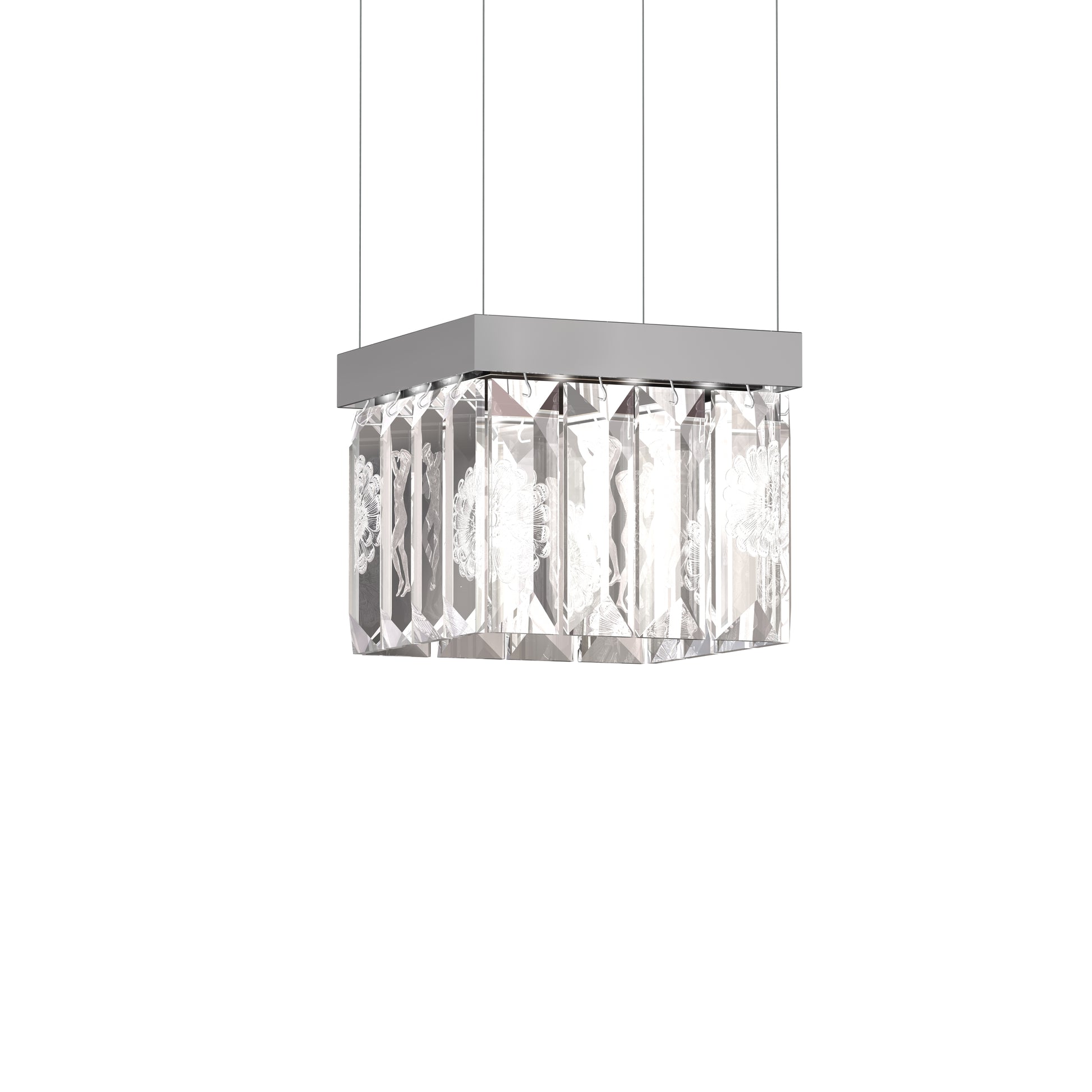 In 1931 René Lalique designed the Dahlia pattern to adorn the boxes which were part of the beauty rituals of every woman from the “Belle Époque“ period. Nowadays, these decorative panels are still fashioned by Lalique in satin finish crystal. The interpretation of this pattern in a crystal prism designed by Windfall creates a new contemporary element for the new lighting collection Serene.