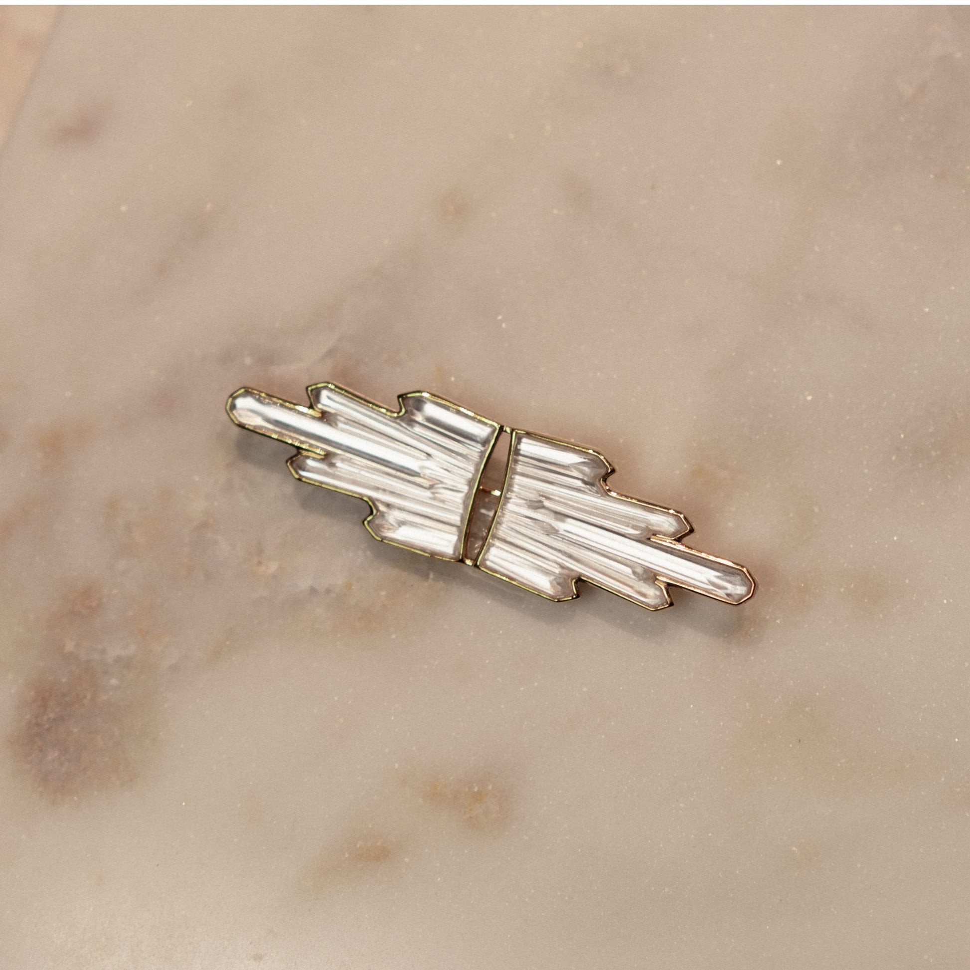 On this brooch, a duo of crystals face each other, creating a captivating play of light and reflections. Lalique drew inspiration from minerals shaped by centuries to recreate their natural beauty in the Terramineral collection. A manufacturing feat, the fine metal frame perfectly embraces the delicately chiseled contours of the crystal, revealing its detailed reliefs.