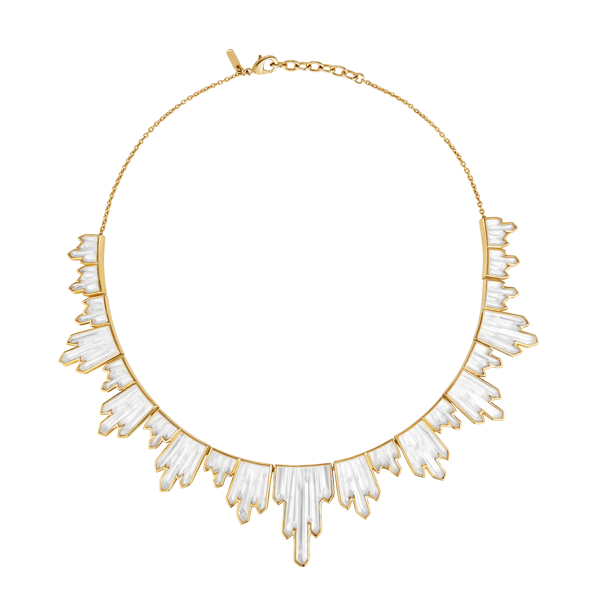 This captivating necklace features 21 crystals, forming a radiant cascade. Each crystal creates a dazzling play of light on an articulated mount in constant motion. This elegant and refined piece attracts all eyes. Lalique drew inspiration from minerals shaped by centuries to recreate their natural beauty in the Terramineral collection. A manufacturing feat, the fine metal frame perfectly embraces the delicately chiseled contours of the crystal, revealing its detailed reliefs.
